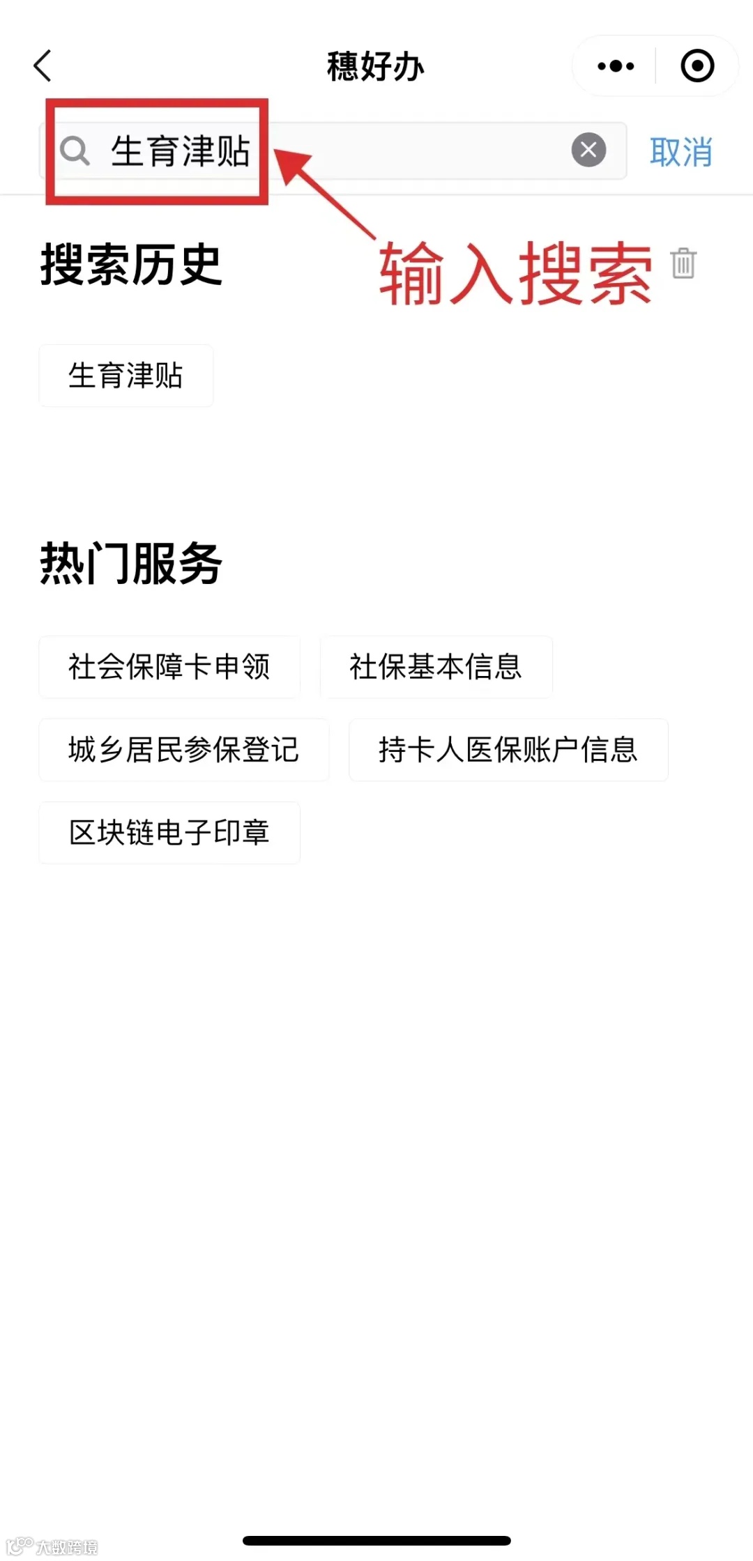 3.在搜索栏搜索“生育津贴”。