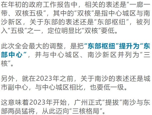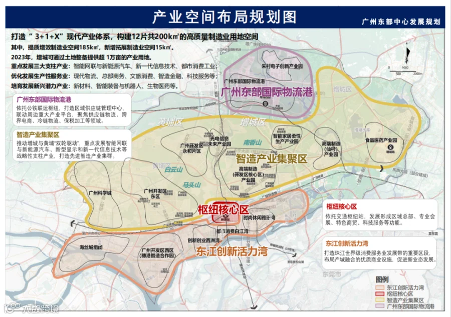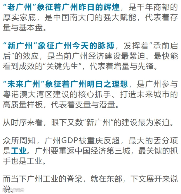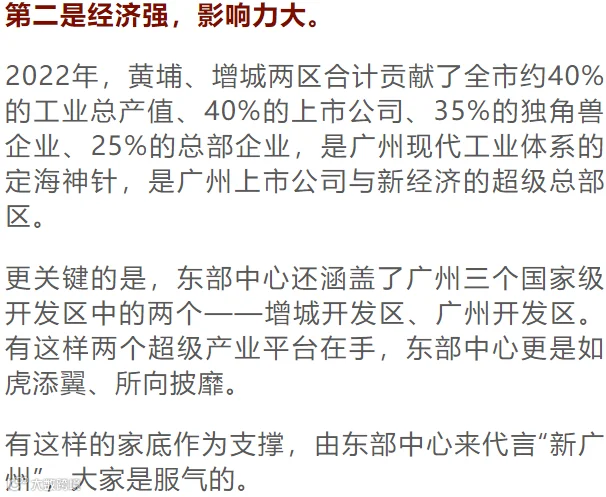 在此意义上,广州的多中心发展,是水到渠成的事情。而占据全市40%工业产值、40%上市公司的东部片区,当仁不让,成为广州多中心发展的中坚力量。