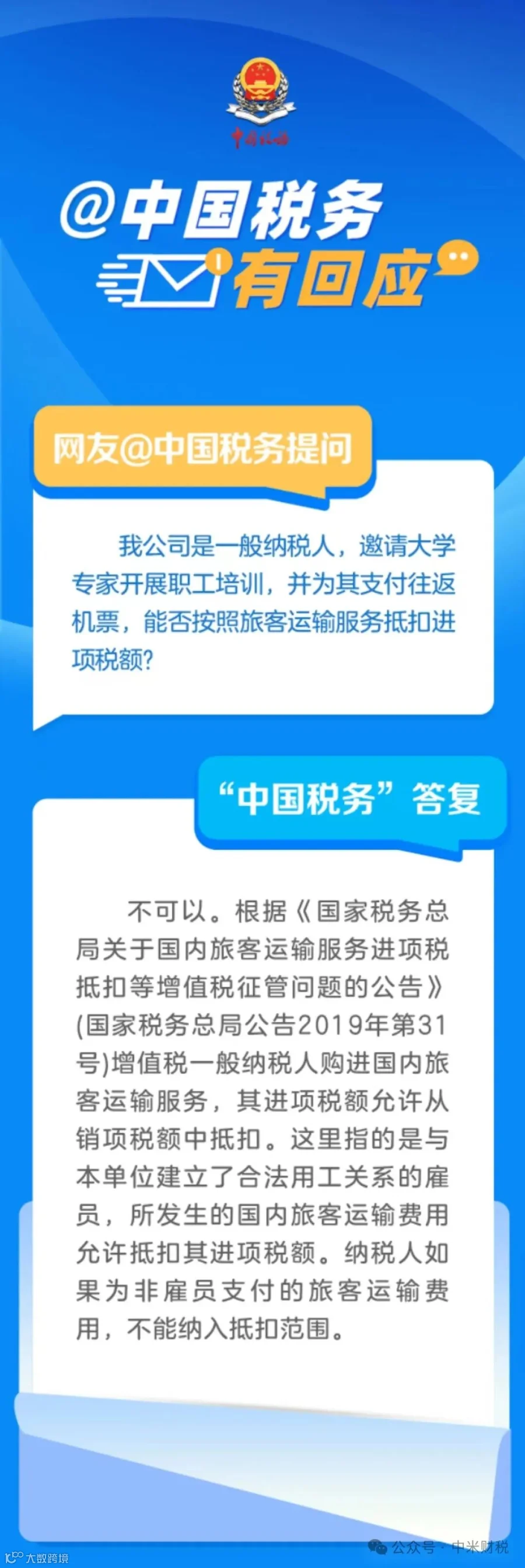 @中国税务有回应丨企业请专家为职工培训,为其支付的往返机票能否抵扣进项税额?