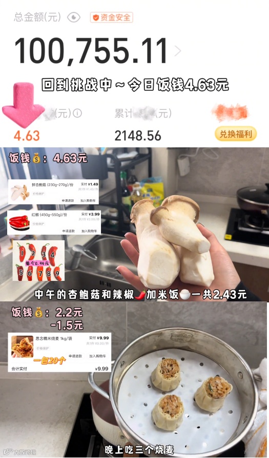 黛黛记录用4.63元饭钱吃一天