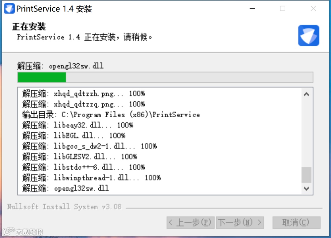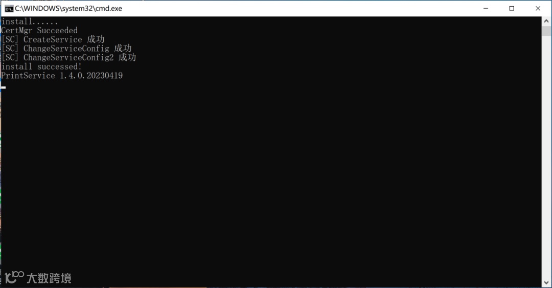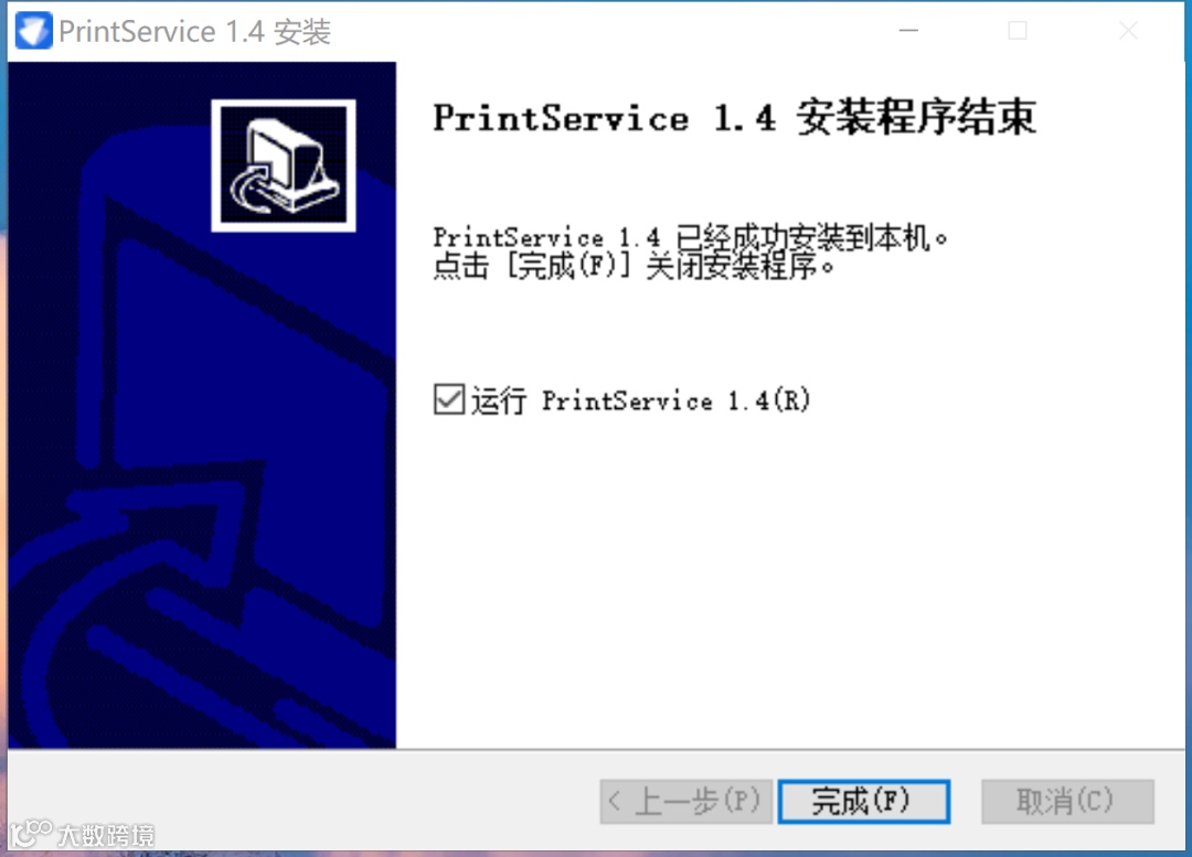 安装完成显示以下界面,此界面可自动关闭无需操作。