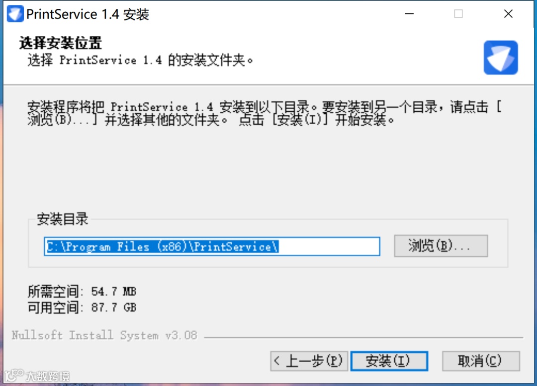 进入服务安装路径设置页面,可以使用默认安装路径,也可以选择“浏览”按钮,手工设置安装路径。路径设置完成后,选择“安装”。
