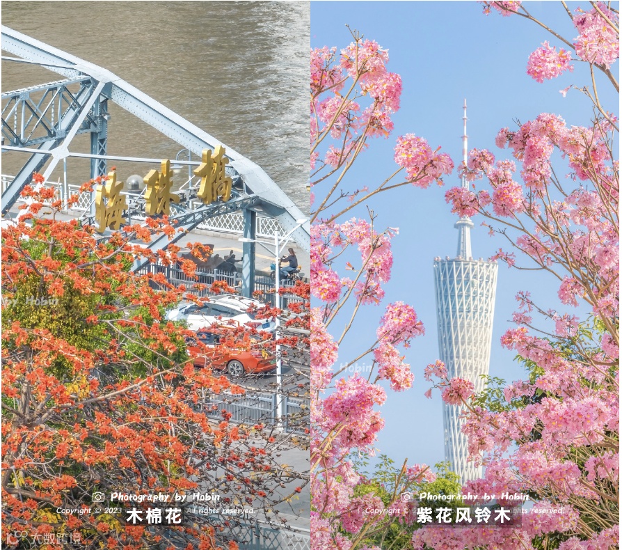 粉色浪漫的宫粉紫荆、金闪闪的黄花风铃木、火红热情的木棉花、如彩带绚丽的三角梅……