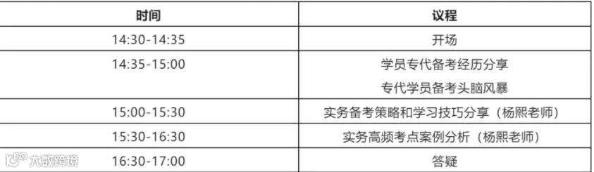 大概15:00开始详细的讲解如何有效进行备考,杨熙老师为学员们分享在备考过程中应掌握的两个关键点,【实务备考策略和学习技巧】。