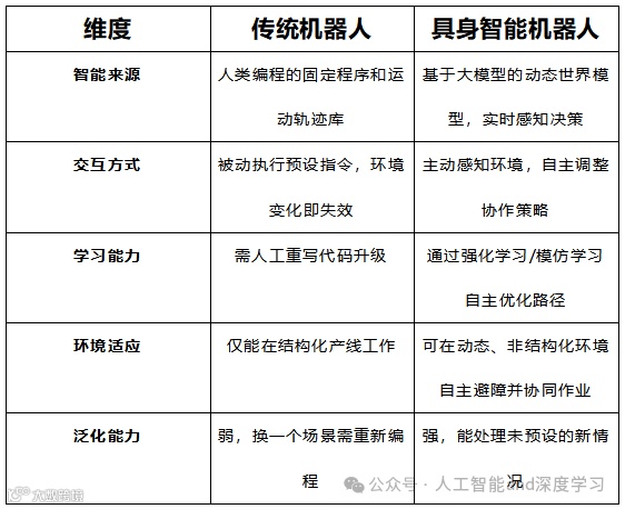 人形机器人适配人类环境的优势天然,但智能灵活性与环境适应能力存瓶颈;具身智能机器人应对复杂、未知环境更优,不过社会接受度或低于人形机器人。