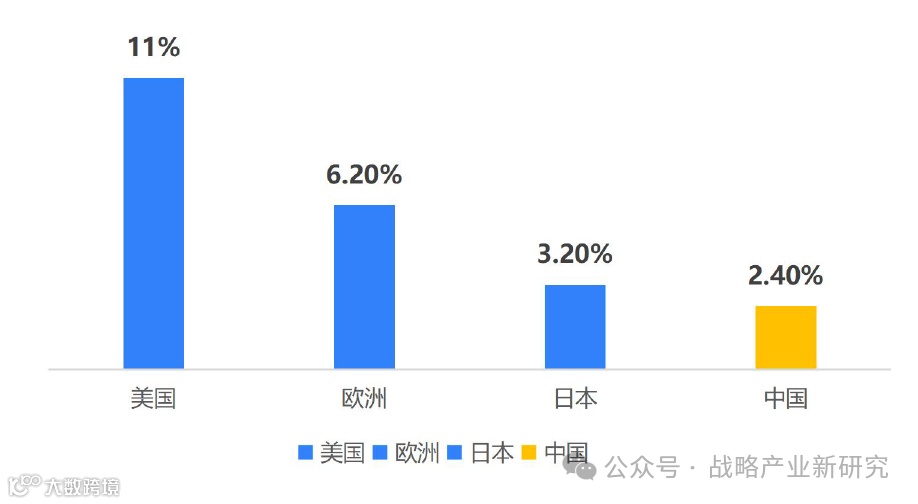 各地区生物制造核心产业增加值占工业增加值比重对比: