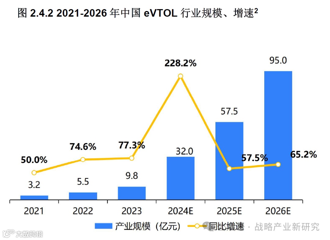 预计到2026 年有望突破万亿元,2021-2026 年CAGR 约29.6%。目前,产业生态初步形成,工业级无人机已实现广泛应用;eVTOL 头部企业已获得型号合格证并开展试点;低空通信、起降场等基础设施开始建设。