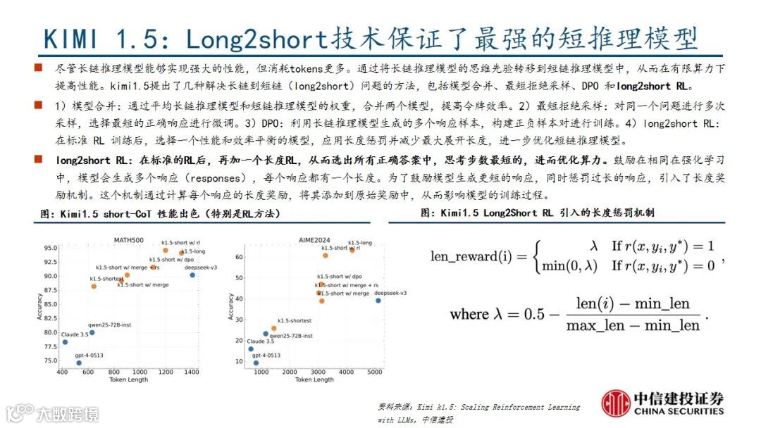 国产模型迈向深度推理,策略创新百花齐放。在Deepseek R1-Zero模型中,采用的强化学习策略是GRPO策略,取消价值网络,采用分组相对奖励,专门优化数学推理任务,减少计算资源消耗;KIMI 1.5采用Partial rollout的强化学习策略,同时采用模型合并、最短拒绝采样、DPO 和long2short RL策略实现短链推理;Qwen2.5扩大监督微调数据范围以及两阶段强化学习,增强模型处理能力。