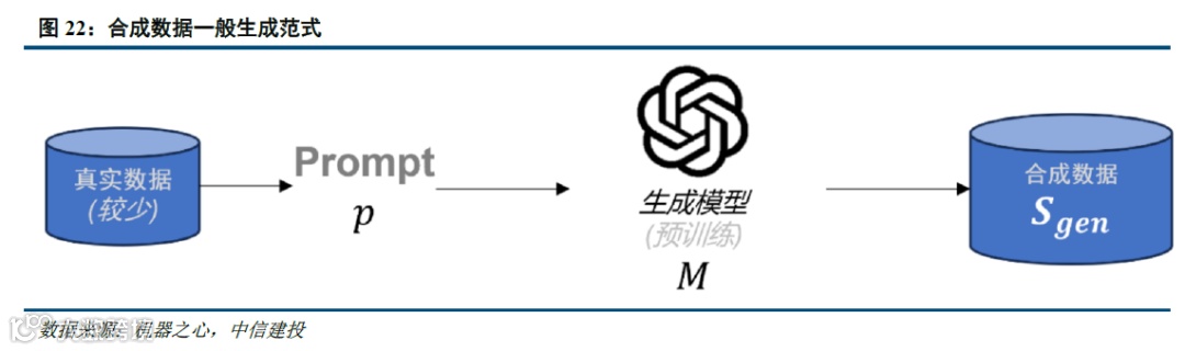 推理模型:在推理模型训练中,合成数据主要用于优化训练流程。例如,DeepSeek-R1在冷启动阶段利用R1-Zero生成+人工标注数据进行微调,并在监督微调阶段通过V3模型收集了约60万条与推理相关的训练样本,以及约20万条与推理无关的训练样本。此外,R1向小模型蒸馏的过程实际上也是通过R1生成数据对小模型进行监督微调实现的。