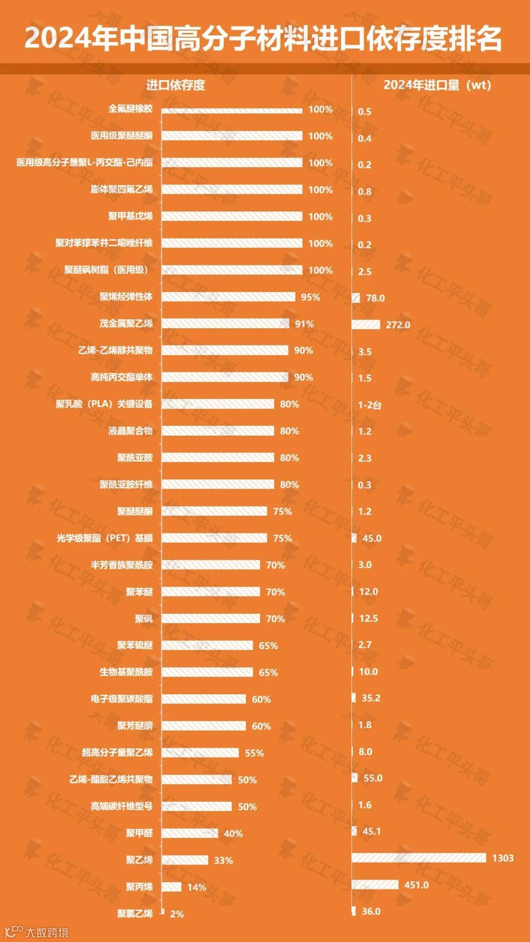 图1:2024年中国高分子材料进口依存度排名