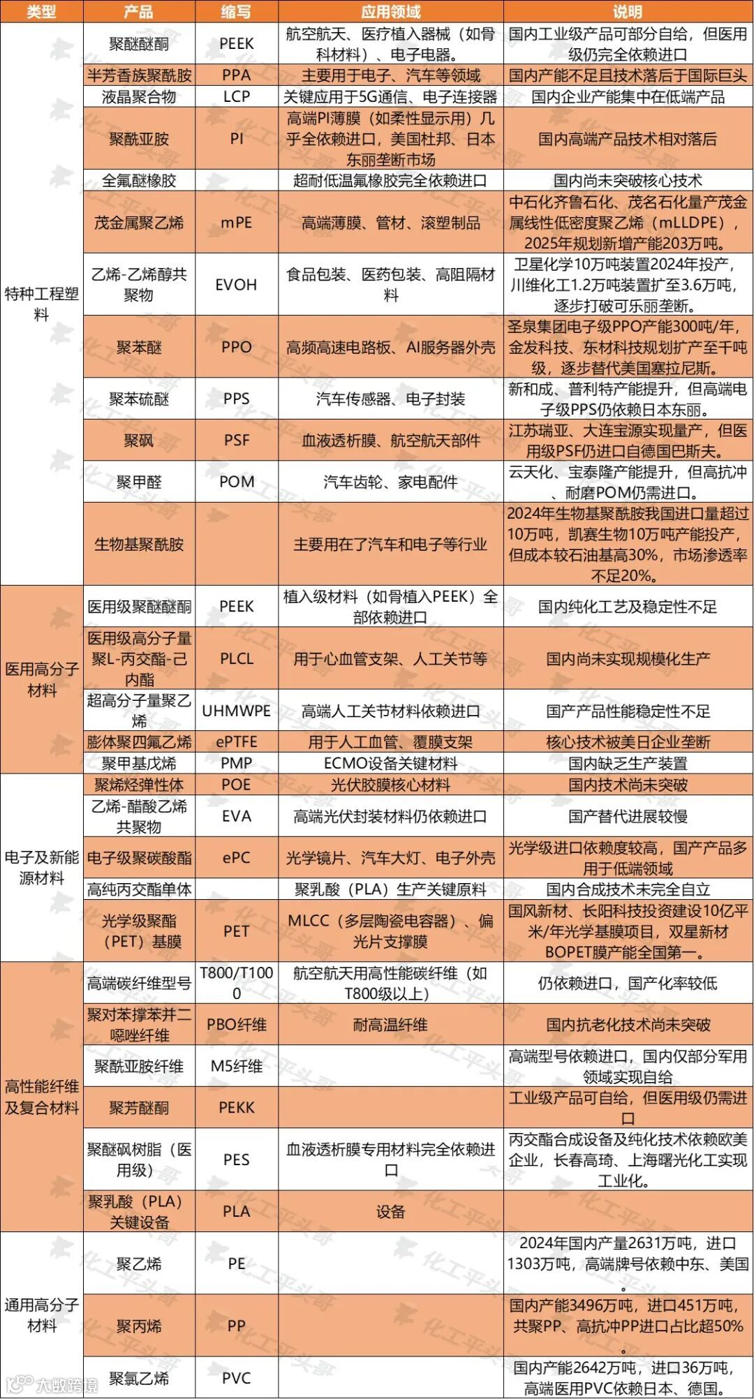 从对高分子材料的进口依存度可以看到,中国在新材料、功能性高分子材料领域中,仍有较多产品需要进一步实现国产化替代,降低对国外市场的依赖。