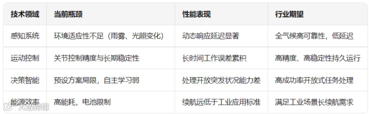 行业关键指标的冲突点(见表1)显示,资本对“人形”概念的沉迷可能导致形态执念与技术实质的本末倒置——限制大规模应用的核心瓶颈并非硬件成本,而是具身智能AI能力的不成熟。