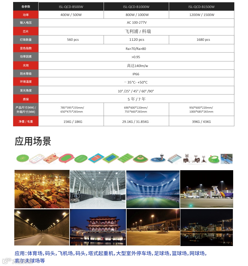 | 1 | 灯具功率 | 500-800-1000-1200-1500W |