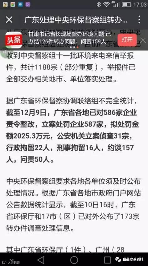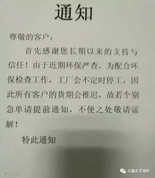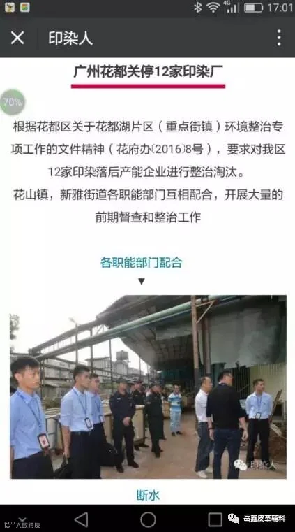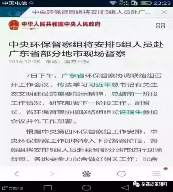 这不,为贯彻落实党中央、国务院关于环境保护督察的重要决策部署,经党中央和国务院批准,中央第四环境保护督察组近日进驻广东省开展环境保护督察工作。根据安排,中央第四环境保护督察组督察进驻时间约1个月左右,广东省逐个市县细数,无一幸免,花都区作为皮革皮具重镇更是首当其冲,全省已经超过100多家印染洗水企业经环保督查组督查关停、整改、放假!!!