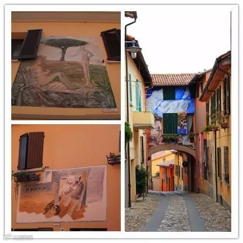 再多看一眼,立刻发现了它的与众不同: 这小城哪哪哪到处都画满了壁画!这座安静的小镇,自1960年开始便有了一个不变的习俗——每两年邀请画家前来喷绘壁画。