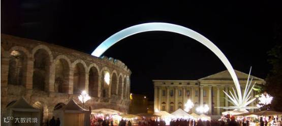 朱丽叶之乡--维罗纳在圣诞夜会在古罗马竞技场内表演盛大的耶稣降生,同时一颗美丽的流星会从竞技场内滑向场外的圣诞集市。