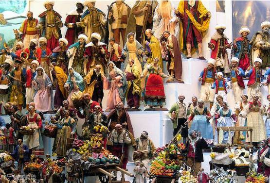 意大利的第一个耶稣降生仪式就在那不勒斯,它发生在1025年。如今,那不勒斯是意大利南部观看耶稣降生仪式最好的城市。同时,那不勒斯还是世界上生产耶稣降生场景最好的城市。他们做工小巧精致,将耶稣降生在马槽时的场景和各个人物刻画得栩栩如生。“Presepe Napoletano”就是对那不勒斯最好的肯定。