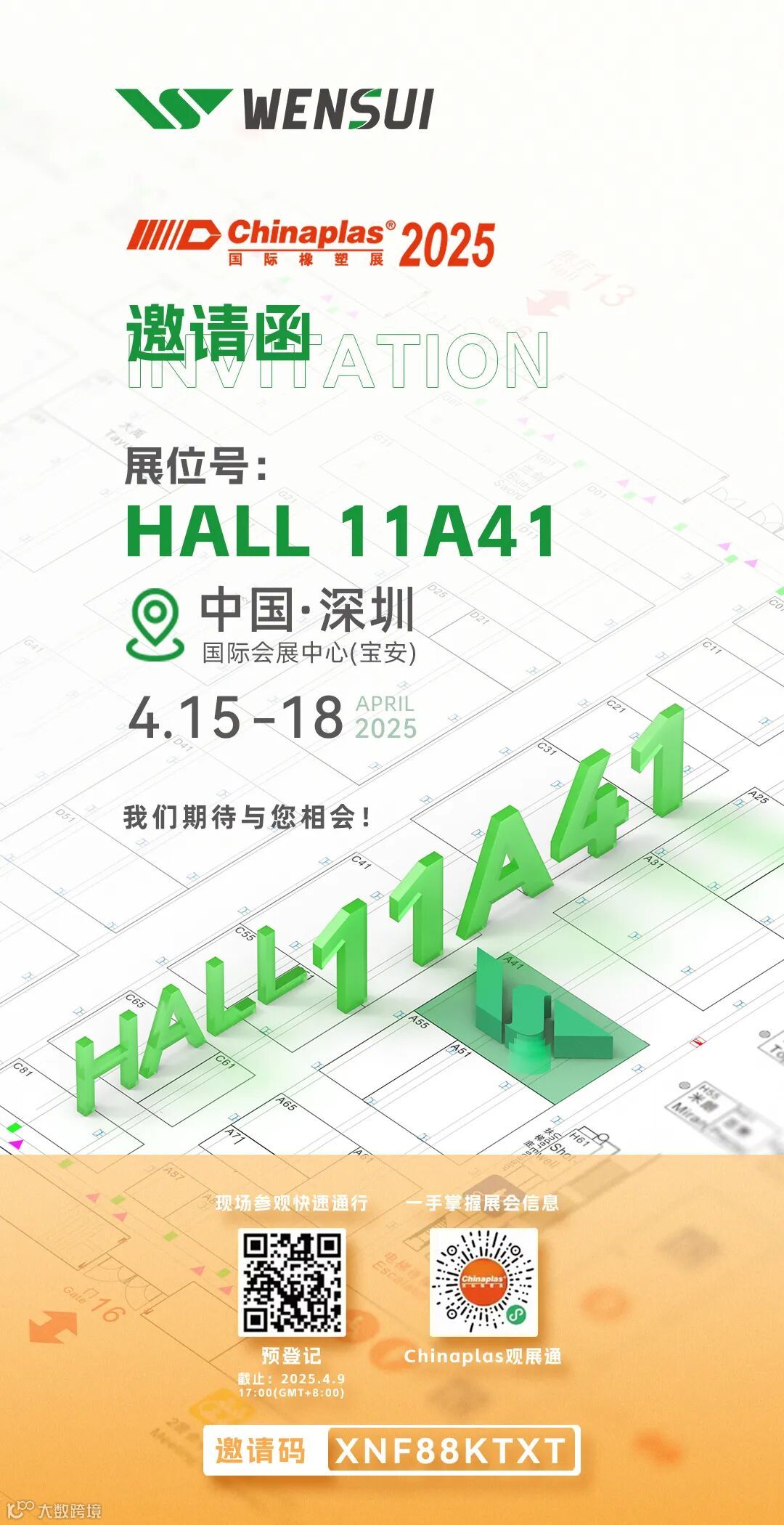 2025年4月15日至18日,全球橡塑行业盛会——第三十七届中国国际塑料橡胶工业展览会(CHINAPLAS 2025)将于深圳宝安国际会展中心隆重举办。文穗集团作为塑料辅机技术领域的创新引领者,诚挚邀请您莅临11区A41展位,共探行业前沿技术,共谋绿色发展新篇。