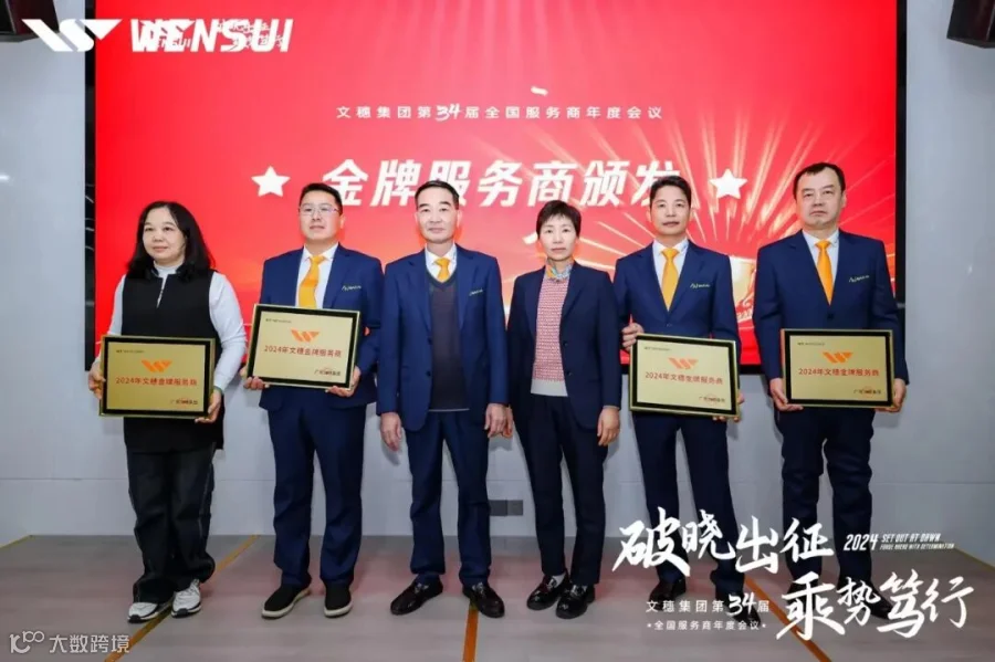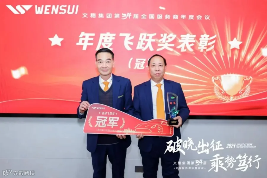 接下来,会议步入表彰环节。年度优秀服务商与年度飞跃奖的得主依次登台领奖。年度优秀服务商的桂冠由南海文慧摘得,上海文穗荣获亚军。而年度飞跃奖的冠军殊荣归属于顺德文穗。