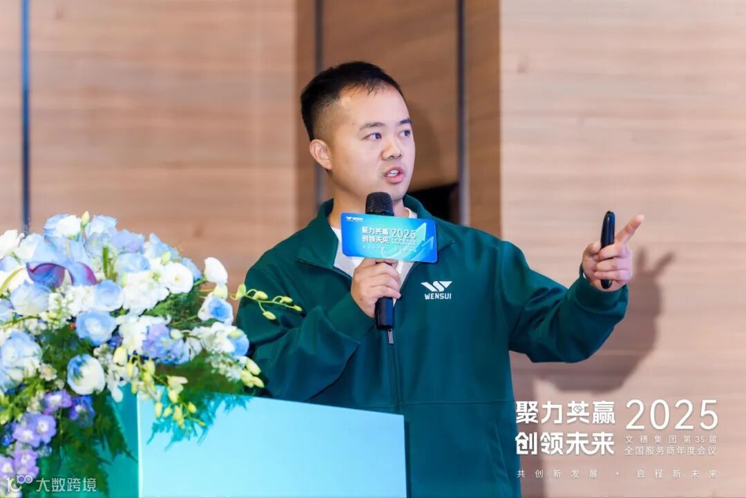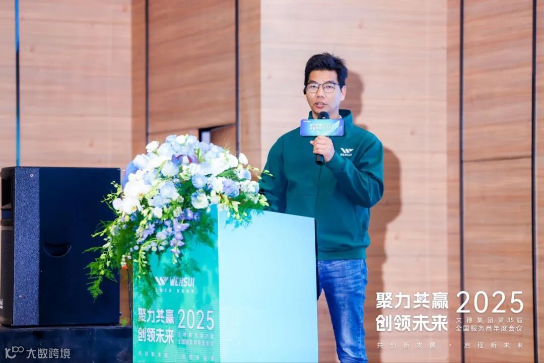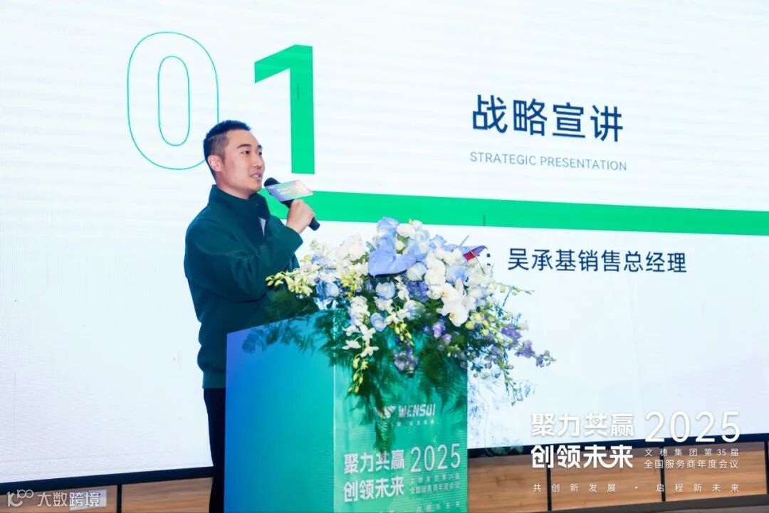 会议启幕,吴董事长发表致辞。他复盘了过去一年与服务商伙伴的合作历程与丰硕成果,向各位伙伴致以诚挚谢意,并围绕 “共生共荣” 的发展观,让大家对未来合作满怀信心。