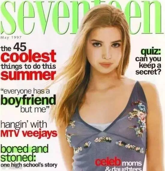 14岁时伊万卡不顾父母的反对决定当一名模特,16岁便登上了著名时尚杂志《Seventeen》的封面。