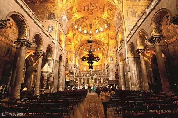 圣马可教堂由于其中埋葬了耶稣门徒圣马可而得名。该教堂矗立于市中心的圣马可广场上,始建于公元9世纪,完工于1094年,其后遭遇大火,历经修复成现今的规模。位于教堂右侧的珍宝馆收藏、陈列有1204年十字军东征从君士坦丁堡带回来的战利品。