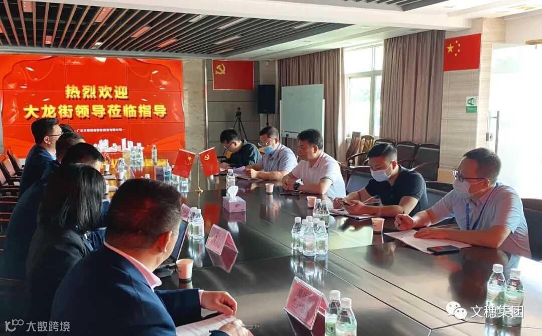 2022年5月17日上午,番禺区大龙街领导带领慰问组到广东文穗集团(以下简称集团),了解集团在疫情常态化下,如何实现打赢疫情防控和企业发展“两场硬仗”等情况。同时,鼓励大家遵守疫情防控规定,齐心协力,共克时艰。集团董事长、运营中心总裁、各部门总监及公司党支部代表均参加会议。