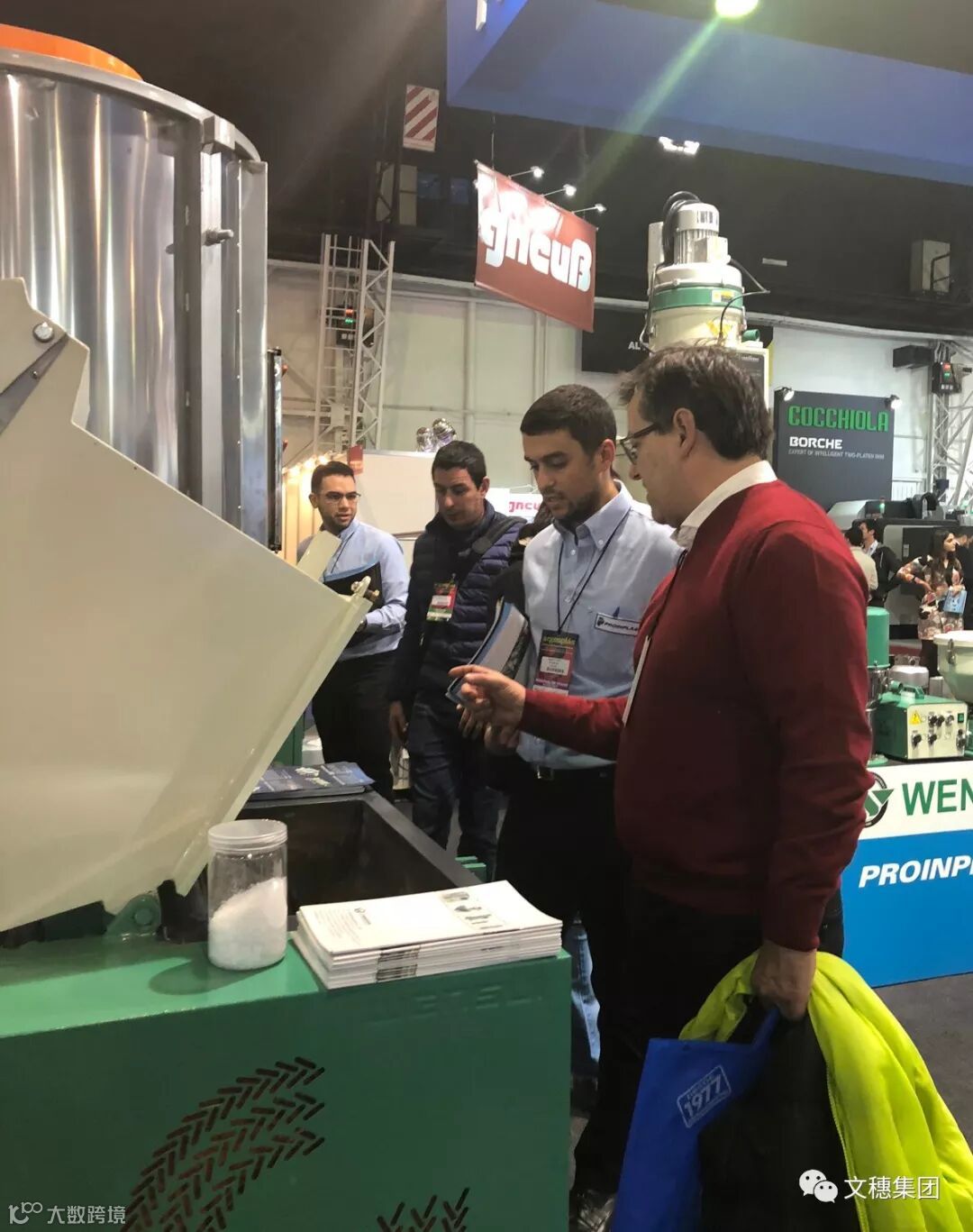 与当地代理Proinplas联合参展的我们展示了当地特别畅销的产品,如薄膜破碎机、静音破碎机、节能型干燥机、搅拌机、吸料机等产品。展会期间,询问的观众和客户络绎不绝,更有甚者详细咨询文穗的新产品撕碎机和废物处理线欲进行新项目。当地的辅机、撕碎机及生产线发展潜力很大,眼下协助代理全力开发当地的市场。展会结束后,文穗的同事一同拜访了数位老客户,并现场帮客户勘察工厂,更加完善售后服务,为接下来的中央供料系统打入南美州市场而做准备。