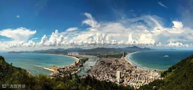 双月湾位于惠东县南端,西眺平海湾的绚烂景色,其所处的半岛地形三面环海,岛心又横生狭长水湾映衬其中,这种奇特的地形使其于风光无限的海滩边呈现出左右两湾一衣带水的的“双月”形特征,这鬼斧神工般的特殊景致鸟瞰之下更令人瞠目结舌,无法不去赞叹其秀美壮观的画面。