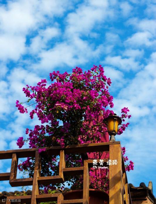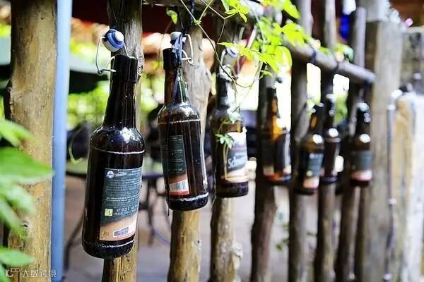 小庭院的木栅栏上挂着零零碎碎的玻璃瓶