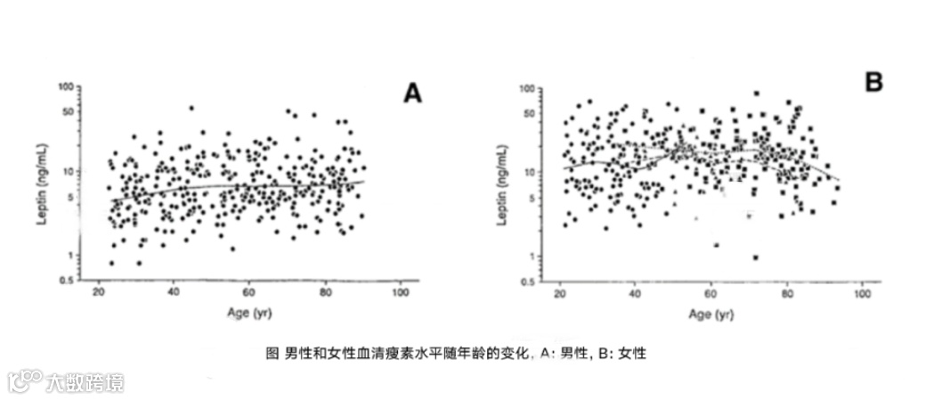 (3)男性瘦素水平为女性的30%左右