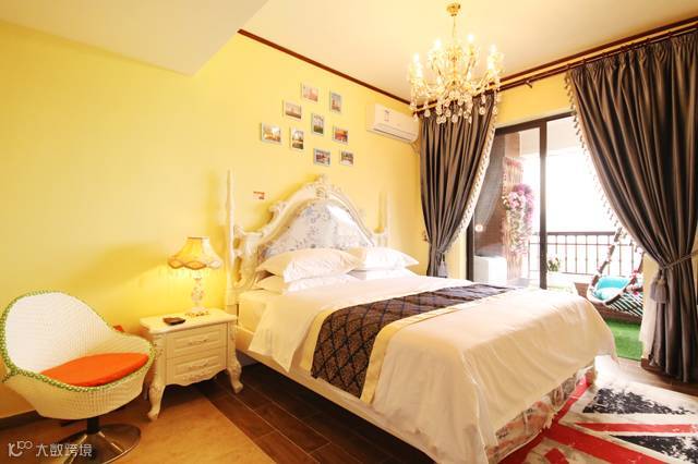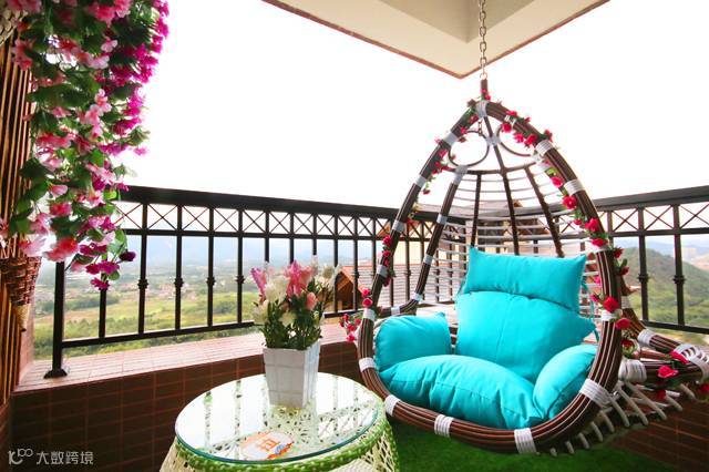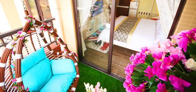 房间装修豪华、干净、整洁,电器俱全,宽敞的阳台,舒适的大吊椅,让你体验到孩童的乐趣