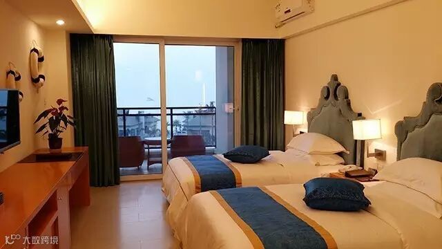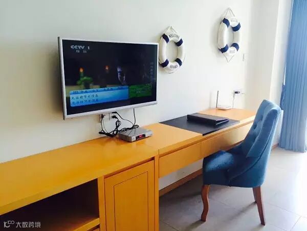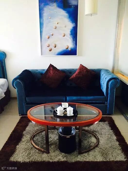 结合地中海风格,其房间主以蓝色为主题,加上超大阳台180度看海;
