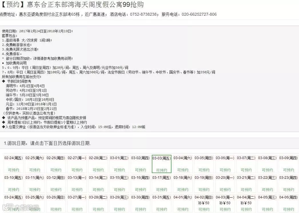 关于合正东部湾-海天阁度假公寓99元套票抢购,