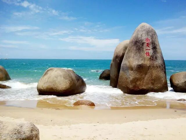 天涯海角是自然海湾,其自然风光很普通,重在古往今来的传说而出名!碧水蓝天一色,烟波浩渺,奇石林立,椰林婆娑,刻有“天涯”、“海角”、“南天一柱”、“海判南天”等巨石雄峙海滨,使整个景区声名远扬!