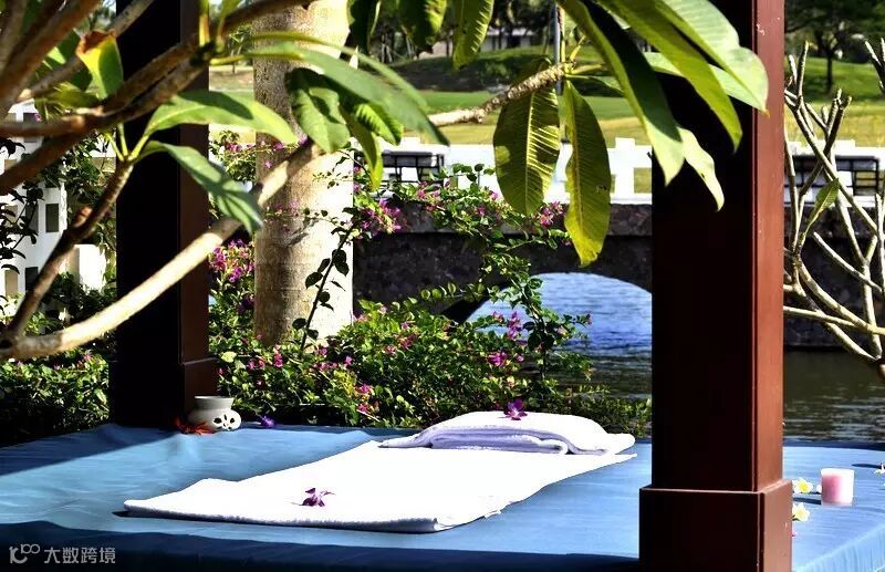 这里被36洞高尔夫球场环绕,背山面海、绿意盎然