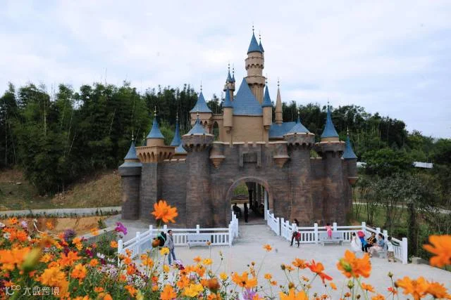 在花海山顶,复刻了法国卢瓦尔河谷城堡,是花海里的标志性建筑