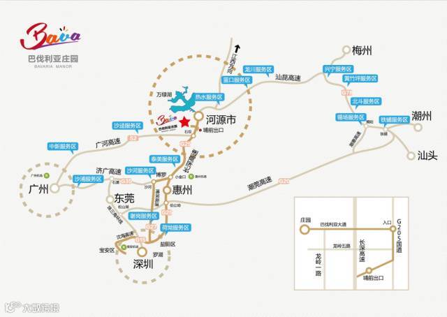东莞:市区经莞深高速——潮莞高速——济广高速(粤赣高速)至埔前出口,下出口左转500米即达巴伐利亚庄园