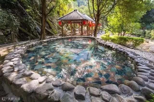 二十多个风格各异的露天温泉池