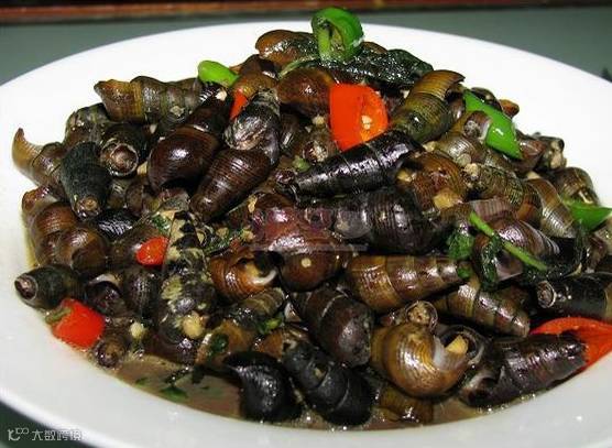 2、爆炒山坑螺,味道鲜爽,秋风起,是嘬山坑螺最佳时间。