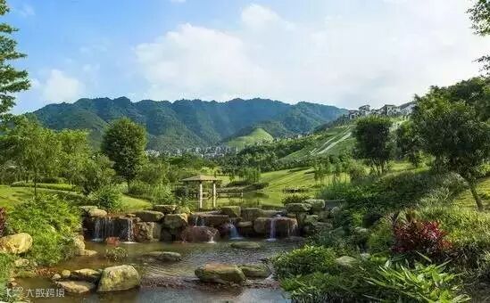 金龟泉生态度假村的建筑景色古香古色,江南园林与岭南山水互相融合,隐逸养生的山水天堂。