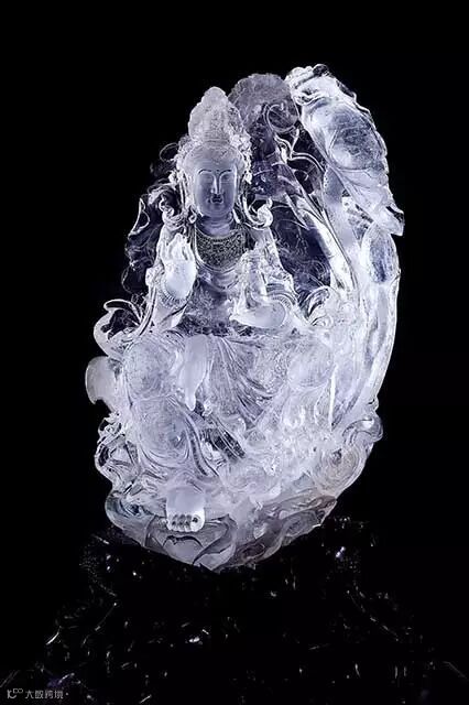 镇馆之宝“水晶观音”,高180公分,重1.5吨,清澈通透度达90%以上,堪称单一晶体的稀世珍宝,历经三年雕琢而成,世上仅此一件。