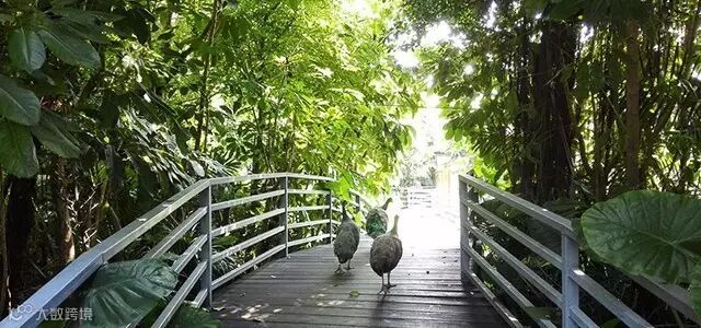 位于园区第一个岛——雨林岛的彩鹦谷,采用拉网的方式营造的一个鸟类天堂,这里面安置了数量众多的鸟类。