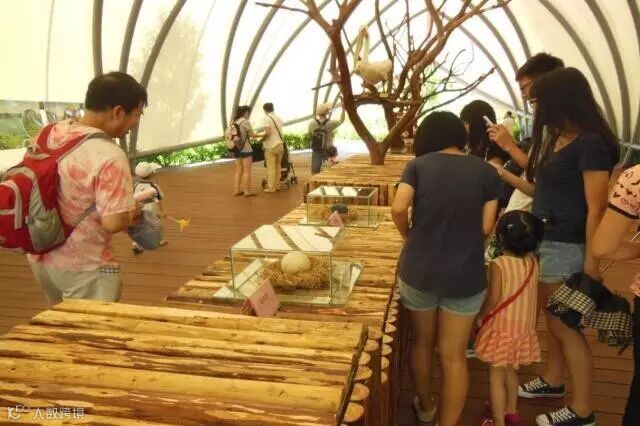 科普长廊里,有着十几个品种的各式鸟类标本,这些鸟都是园区自然死亡的本体,还有数量众多的鸟蛋标本。标本大师的制作让它们的姿态神情永恒,分布错落有致,与大厅的建筑结构相依生辉。