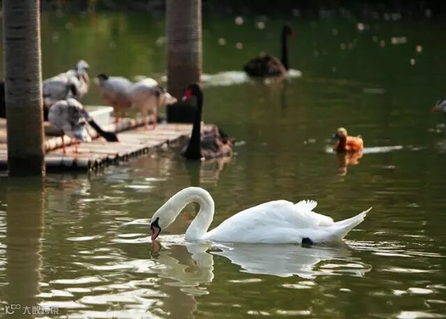 天鹅湖位于园区主入口,水域面积约为10万平方米,从荷兰引进的疣鼻天鹅和黑天鹅,都是动物界的模范夫妻,至始至终都是出双入对,从一而终,位列“十大爱情鸟”前5