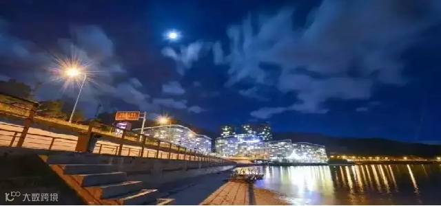 暮色降临,弯月如钩这迷人的海滩沉睡在柔和月色中