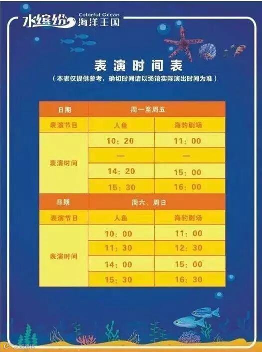(穿越亚马逊+红珊瑚峡谷+水母万花筒+失落宝藏城+人鱼表演馆+海狮海豹表演馆)