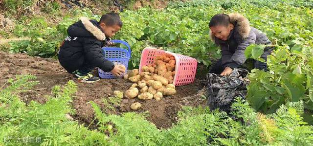 自己动手丰衣足食,全家人齐齐上,挖土豆咯