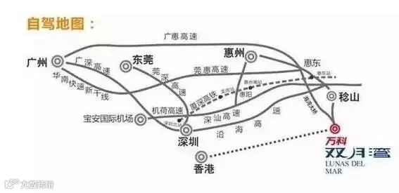 ◆ 广州:环城高速-济广高速-广惠高速-惠州跨海大桥-平海-万科·双月湾