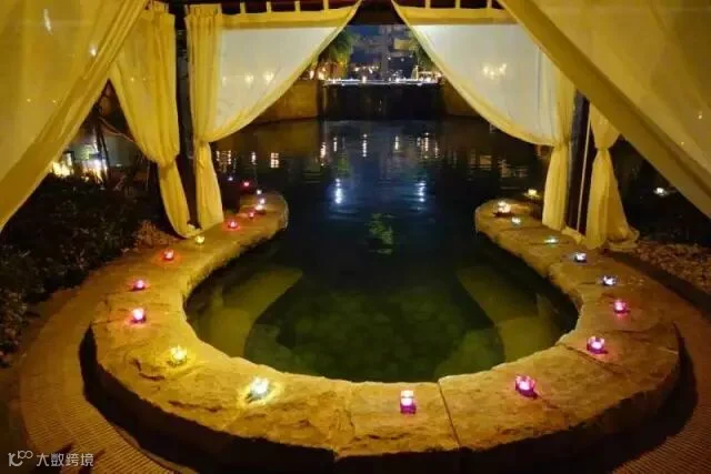 夜幕下的温泉,热气氤氲,烟雾迷离。
